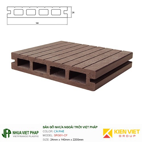 Sàn gỗ nhựa ngoài trời Việt Pháp SGR01-CF 4 lỗ | 24x140mm
